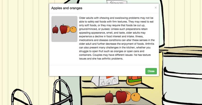 Older adults are at high risk for developing chronic illnesses and related disabilities. Treating the older adult requires special approaches and an understanding of the physiologic, functional, psychosocial and environmental determinants of aging. Take a look at an aging couple’s kitchen to identify a few areas of concern on nutrition and oral health.