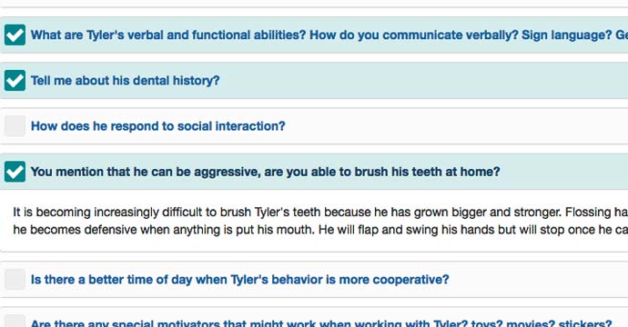 This interactive is part of an exercise demonstrating a scenario where a dental care provider is challenged with access and treatment options of the special needs population.